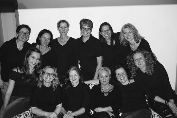 zur zeit sind wir 13 sängerinnen und wir verteilen uns je nach lied auf 3, 4 oder 5 stimmen.